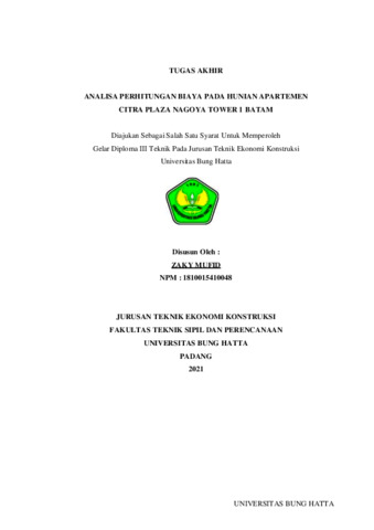 Zaky, Mufid and Fielda, Roza (2021) ANALISA PERHITUNGAN BIAYA PADA HUNIAN APARTEMEN CITRA PLAZA NAGOYA TOWER 1 BATAM. Diploma thesis, Universitas Bung Hatta.