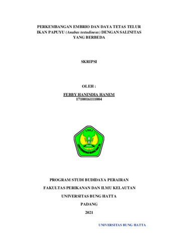 Febby Hanindia Hanem, FHH and Dr. Ir. Usman Bulanin, MS, UB (2021) PERKEMBANGAN EMBRIO DAN DAYA TETAS TELUR IKAN PAPUYU (Anabas testudineus) DENGAN SALINITAS YANG BERBEDA. Diploma thesis, Universitas Bung Hatta.