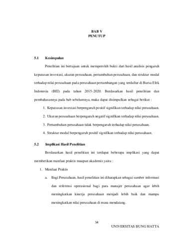 Erin, Setiani and Herawati, Herawati (2021) PENGARUH KEPUTUSAN INVESTASI UKURAN PERUSAHAAN PERTUMBUHAN PERUSAHAAN DAN STRUKTUR MODAL TERHADAP NILAI PERUSAHAAN. Diploma thesis, Universitas Bung Hatta.