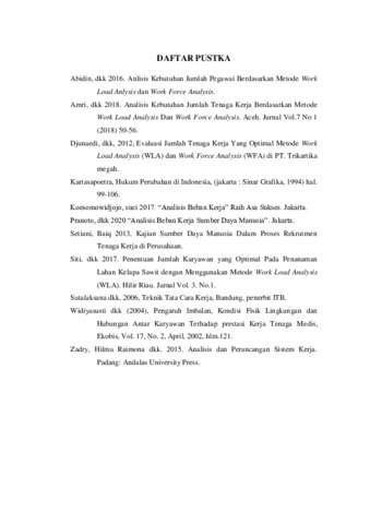Tri wahyuni, yuni and Dessi Mufti, S.T., M.T, Dessi Mufti, S.T., M.T (2021) ANALISA TENAGA KERJA DENGAN MENGGUNAKAN WORK LOAD ANALISIS (WLA) DAN WORK FORCE ANALYSIS (WFA) PROSES PEMUATAN DAN PENYORTIRAN TANDAN BUAH SEGAR. Diploma thesis, Universitas Bung Hatta.