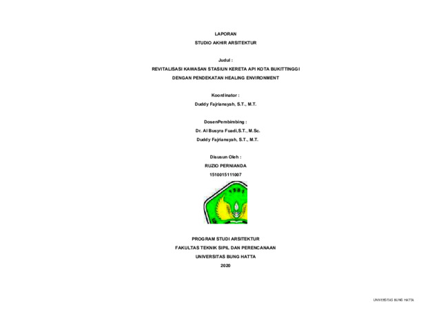 Ruzio, Pernianda and Al Busyra, Fuadi and Duddy, Fajriansyah (2020) REVITALISASI KAWASAN STASIUN KERETA API KOTA BUKITTINGGI DENGAN PENDEKATAN HEALING ENVIRONMENT. Diploma thesis, UNIVERSITAS BUNG HATTA.