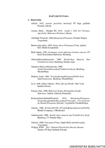 Maizul, Kadri and Nurbeti, Nurbeti and Suamperi, Suamperi (2021) PELAKSANAAN PELAYANAN PUBLIK DI DINAS PENDIDIKAN DAN KEBUDAYAAN DI KABUPATEN PESISIR SELATAN BERDASARKAN PERATURAN BUPATI KABUPATEN PESISIR SELATAN NOMOR 27 TAHUN 2017 TENTANG ROAD MAP REFORMASI BIROKRASI. Diploma thesis, Universitas Bung Hatta.