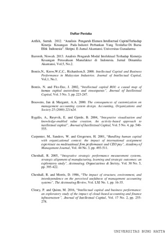 PENGARUH SISTEM AKUNTANSI MANAJEMEN TERHADAP INTELLECTUAL CAPITAL (Studi Empiris pada Perusahaan Perbankan di Sumatera Barat) Syarif Husni, Fivi Anggraini, . Meihendri Sari Penelitin ini meneliti tentang pengaruh system akuntansi manajemen terhadap intellectual capital. Bank Pembangunan Daerah di Sumatera Barat melakukan pengembangan inovasi dan teknolgi dengan penerapan intellectual capital denganmengubahprinsipbisnisdariLabor based business menjadi knowledge based business. Teori Stakeholder Freeman and Reed (1983) stakeholder adalah kelompok atau individu yang dapat diidentifikasi yang dapat mempengaruhi pencapaian tujuan organisasi, atau dipengaruhi oleh pencapaian tujuan organisasi. Resources based theory (RBT) dipelopori oleh Penrose (1959) menyatakan bahwa sumber daya perusahaan adalah heterogen, jasa produktif yang tersedia berasal dari sumber daya perusahaan yang memberikan karakter unik bagi tiap-tiap perusahaan. Populasi dalam penelitian ini adalah manajer senior pada perbankan di Sumatera Barat. Sampel dalam penelitian ini diambil menggunakan metode pengumpulan data yang disebut purposive sampling. Jumlah sampel dalam penelitian yang digunakan yaitu sebanyak 57 responden. Pengujian hipotesis menggunakan uji structural model atau inner model. Hasil dari penelitian ini menunjukan bahwa dimensi jenis informasi SAM berpengaruh positif terhadap intellectual capital sedang kangaya penggunaan SAM dan jenis keputusan SAM tidak berpengaruh positif terhadap intellectual capital. Dimensi jenis keputusan SAM berpengaruh positif terhadap human capital, sedangkan gaya penggunaan SAM dan jenis informasi SAM tidak berpengaruh positif terhadap human capital. Dimensi jenis informasi SAM berpengaruh positif terhadap structural capital, sedangkan gaya penggunaan SAM dan jenis keputusan SAM tidak berpengaruh positif terhadap structural capital. Dimensi jenis informasi SAM berpengaruh positif terhadap relational capital, sedangkan gaya penggunaan SAM dan jenis keputusan SAM tidak berpengaruh positif terhadap Relational capital. Kesimpulan pada penelitian ini menunjukan bahwa gaya penggunaan SAM tidak berpengaruh positif terhadap intellectual capital pada perushaan perbankan di Sumatera Barat, jenis informasi SAM berpengaruh positif terhadap intellectual capital pada perushaan perbankan di Sumatera Barat. Jenis Keputusan SAM tidak berpengaruh positif terhadap intellectual capital pada perushaan perbankan di Sumatera Barat, Gaya penggunaan SAM tidak berpengaruh positif terhadap human capital pada perushaan perbankan di Sumatera Barat, jenis informasi SAM tidak berpengaruh positif terhadap human capital pada perusahaan perbankan di Sumatera Barat, jenis keputusan SAM berpengaruh positif terhadap human capital pada perusahaan perbankan di Sumatera Barat. Gaya penggunaan SAM tidak berpengaruh positif terhadap structural capital pada perusahaan perbankan di Sumatera Barat, jenis informasi SAM berpengaruh positif terhadap structural capital pada perusahaan perbankan di Sumatera Barat, jenis keputusan SAM tidak berpengaruh positif terhadap structural capital pada perusahaan perbankan di Sumatera Barat. Gaya penggunaan SAM tidak berpengaruh positif terhadap relational capital pada perusahaan perbankan di Sumatera Barat, jenis informasi SAM berpengaruh positif terhadap relational capital pada peusahaan perbankan di Sumatera Barat, jenis keputusan SAM tidak berpengaruh positif terhadap relational capital pada perusahaan perbankan di Sumatera Barat. Kata Kunci : Sistem Akuntansi Manajemen,Intellectual Capital, Human Capital, Structural Capital, Relational Capital