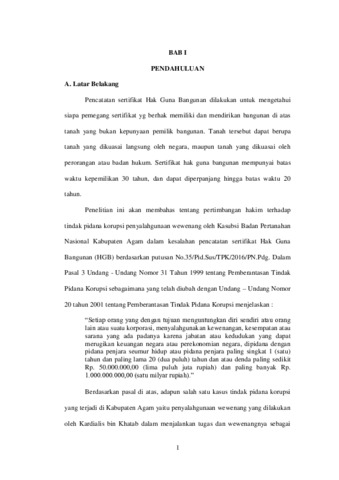 CAHYANI, MULIA PUTRI and Uning, Pratimaratri and Syafridatati, Syafridatati (2021) PERTIMBANGAN HAKIM DALAM PERKARA TINDAK PIDANA KORUPSI PENYALAHGUNAAN WEWENANG OLEH KASUBSI BADAN PERTANAHAN NASIONAL KABUPATEN AGAM DALAM KESALAHAN PENCATATAN SERTIFIKAT HAK GUNA BANGUNAN (HGB) (PUTUSAN NO.35/PID.SUS/TPK/2016/PN.PDG). Diploma thesis, UNIVERISTAS BUNG HATTA.