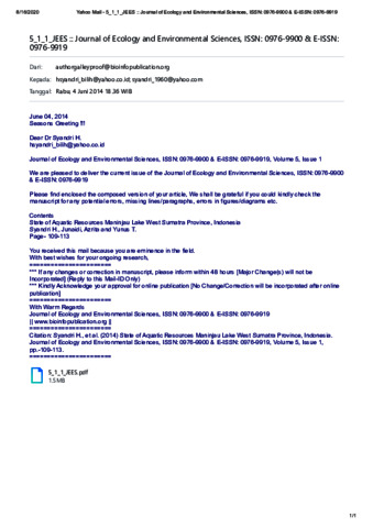Junaidi, Junaidi (2014) STATE OF AQUATIC RESOURCES MANINJAU LAKE WEST SUMATRA PROVINCE, INDONESIA. STATE OF AQUATIC RESOURCES MANINJAU LAKE WEST SUMATRA PROVINCE, INDONESIA, 5 (1). pp. 109-113. ISSN 0976-9900