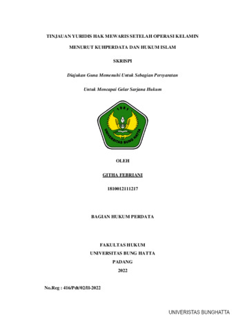 Githa, Febriani and Desmal, Fajri (2022) Tinjauan Yuridis Hak Mewaris Setelah Operasi Kelamin Menurut KUHPerdata Dan Hukum Islam. Diploma thesis, Universitas Bung Hatta.