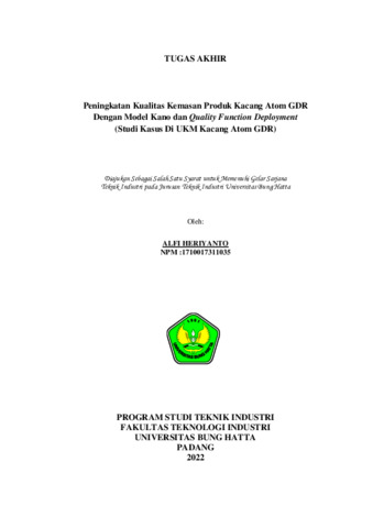 Alfi, Heriyanto and Yesmizarti, Muchtiar (2022) Peningkatan Kualitas Kemasan Produk Kacang Atom GDR Dengan Model Kano dan Quality Function Deployment. Diploma thesis, Universitas Bung Hatta.
