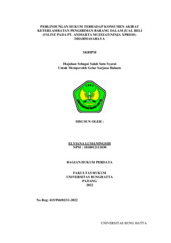 PERLINDUNGAN HUKUM TERHADAP KONSUMEN AKIBAT KETERLAMBATAN PENGIRIMAN BARANG DALAM JUAL BELI ONLINE PADA PT. ANDIARTA MUZIZAT (NINJA XPRESS) DHARMASARAYA