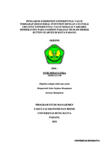 Nuri, Hidayatika and Dahliana, Kamener (2022) PENGARUH EXHIBITION EXPERIENTIAL VALUE TERHADAP BEHAVIORAL INTENTION DENGAN CULTURAL CREATIVE EXPERIENTIAL VALUE SEBAGAI VARIABEL MODERATING PADA FASHION PAKAIAN MUSLIM MEREK BUTTON SCARVES DI KOTA PADANG. Diploma thesis, UNIVERSITAS BUNG HATTA.