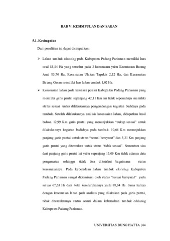 Wulan Diva, Fortuna and Arlius, Arlius (2022) ANALISIS KESESUAIAN LAHAN UNTUK MENDUKUNG KEGIATAN BUDIDAYA PADA TAMBAK DI KAWASAN PESISIR KABUPATEN PADANG PARIAMAN. Diploma thesis, Universitas Bung Hatta.