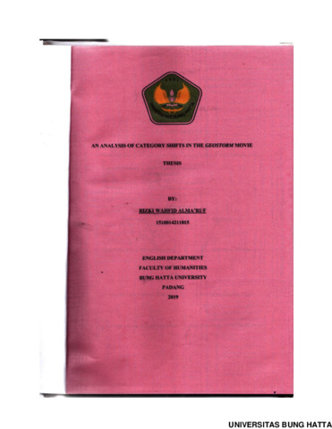 Rizki, Wahfid Alma‟ruf and Diana, Chitra Hasan and Nova, Rina (2020) AN ANALYSIS OF CATEGORY SHIFT IN THE GEOSTORMMOVIE BY DEAN DEVLIN. Diploma thesis, Universitas Bung Hatta.