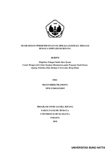 Irson, Didik Pramono and Oslan, Amril and Dibya, Prayassita Somya Rosa (2020) Sejarah Dan Perkembangan Olahraga Baseball Sebagai Budaya Populer Di Jepang. Diploma thesis, Universitas Bung Hatta.