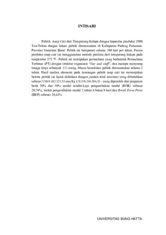 Pabrik Asap Cair dari Tempurung Kelapa dengan kapasitas produksi 2000 Ton/Tahun dengan lokasi pabrik direncanakan di Kabupaten Padang Pariaman. Provinsi Sumatera Barat. Pabrik ini beroperasi selama 300 hari per tahun. Proses produksi asap cair ini menggunakan metode pirolisis dari tempurung kelapa pada temperatur 575 Ԩ. Pabrik ini merupakan perusahaan yang berbentuk Perusahaan Terbatas (PT) dengan struktur organisasi “line and staff”, dan mampu menyerap tenaga kerja sebanyak 111 orang. Massa konstruksi pabrik direncanakan selama 2 tahun. Hasil analisa ekonomi pada rancangan pabrik asap cair ini menunjukan bahwa pabrik ini layak didirikan dengan jumlah total investasi yang dibutuhkan sebesar US$ 9.102.227,55 atau Rp 128.576.245.916,53 - yang diperoleh dari pinjaman bank 50% dan 50% modal sendiri.Laju pengembalian modal (ROR) sebesar 20,74%, waktu pengembalian modal 2 tahun 6 bulan 9 hari dan Break Event Point (BEP) sebesar 20,63%.